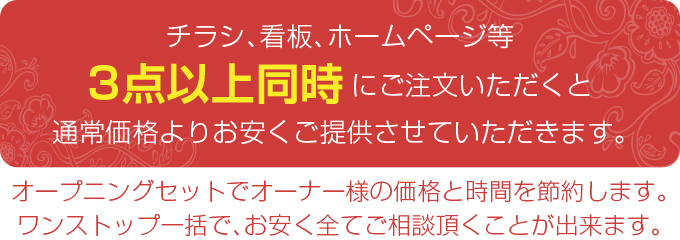 オープニングセット 店舗開業・開店/リニューアル 看板・印刷・ホームページ 内装・外装